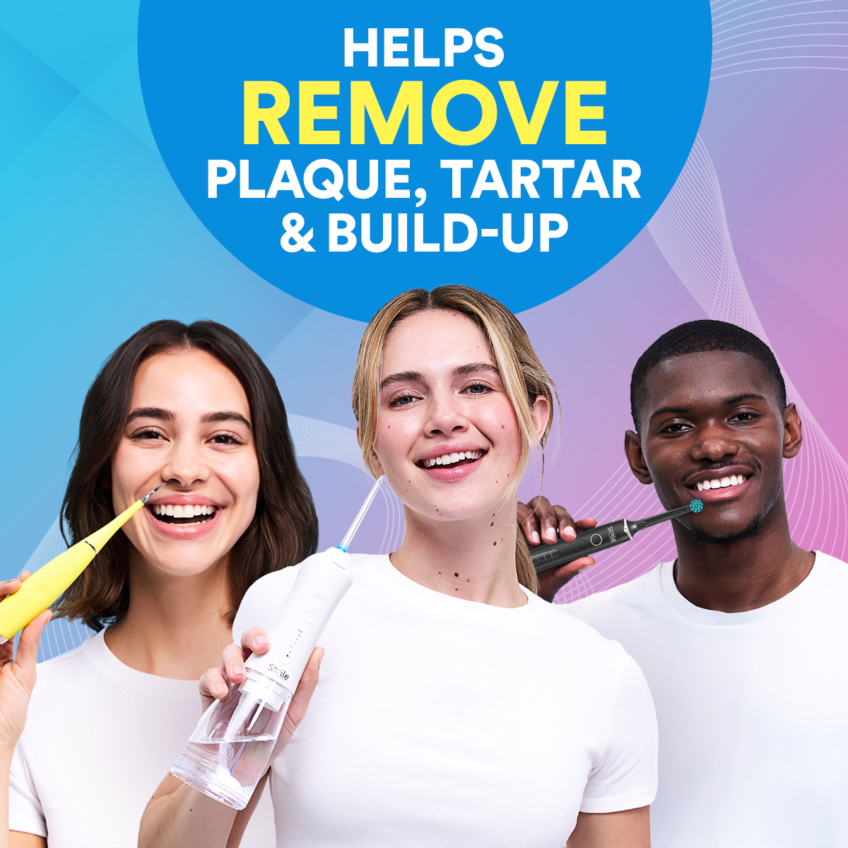 Experience your cleanest smile at home. This complete cleaning bundle helps loosen surface buildup, freshen your mouth, and leave your teeth feeling smoother every day. With a powerful ultrasonic cleaner, a deep-cleaning water flosser, and a 5-in-1 oscillating toothbrush, each tool works together to give you a brighter, cleaner feel with minimal effort.