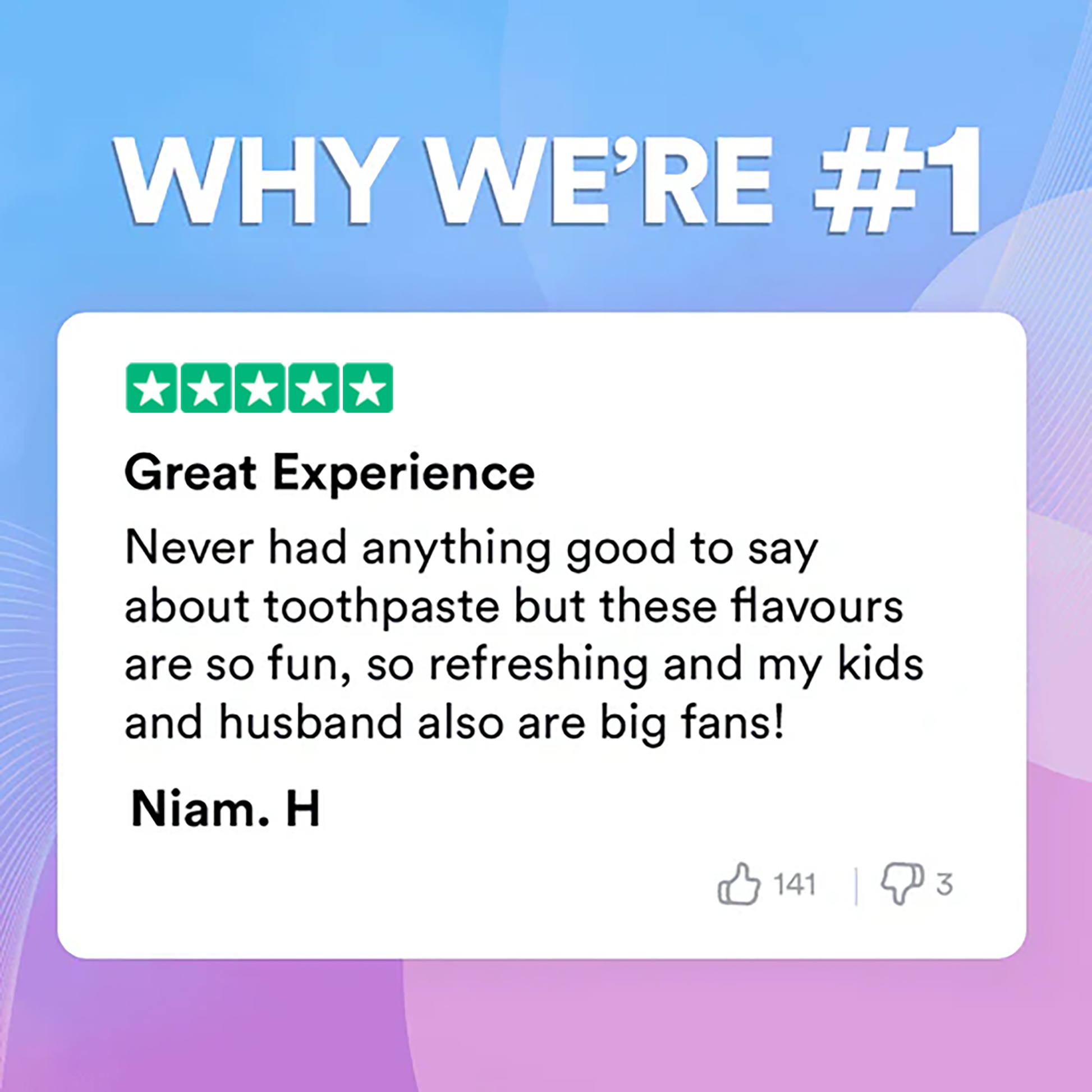 "I LOVE THE WATERMELON BLAST, IT'S MADE ME BRUSH FOR LONGER AND MY MOUTH FEELS MUCH MORE REFRESHED AFTER THAN USING A COLGATE MINT TOOTHPASTE!"