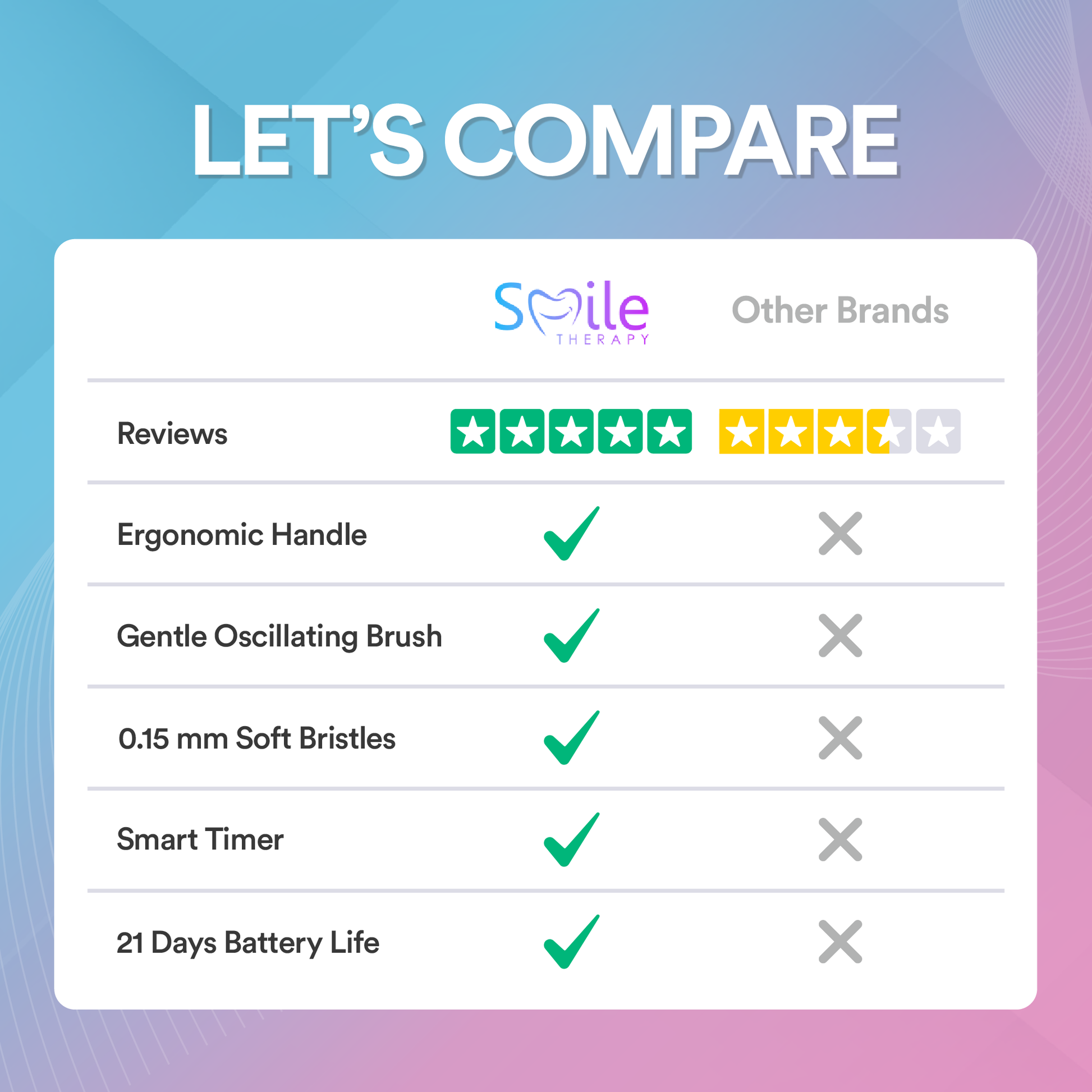 - Brush Smart: Gentle brushing, guided by 30-second pulses.