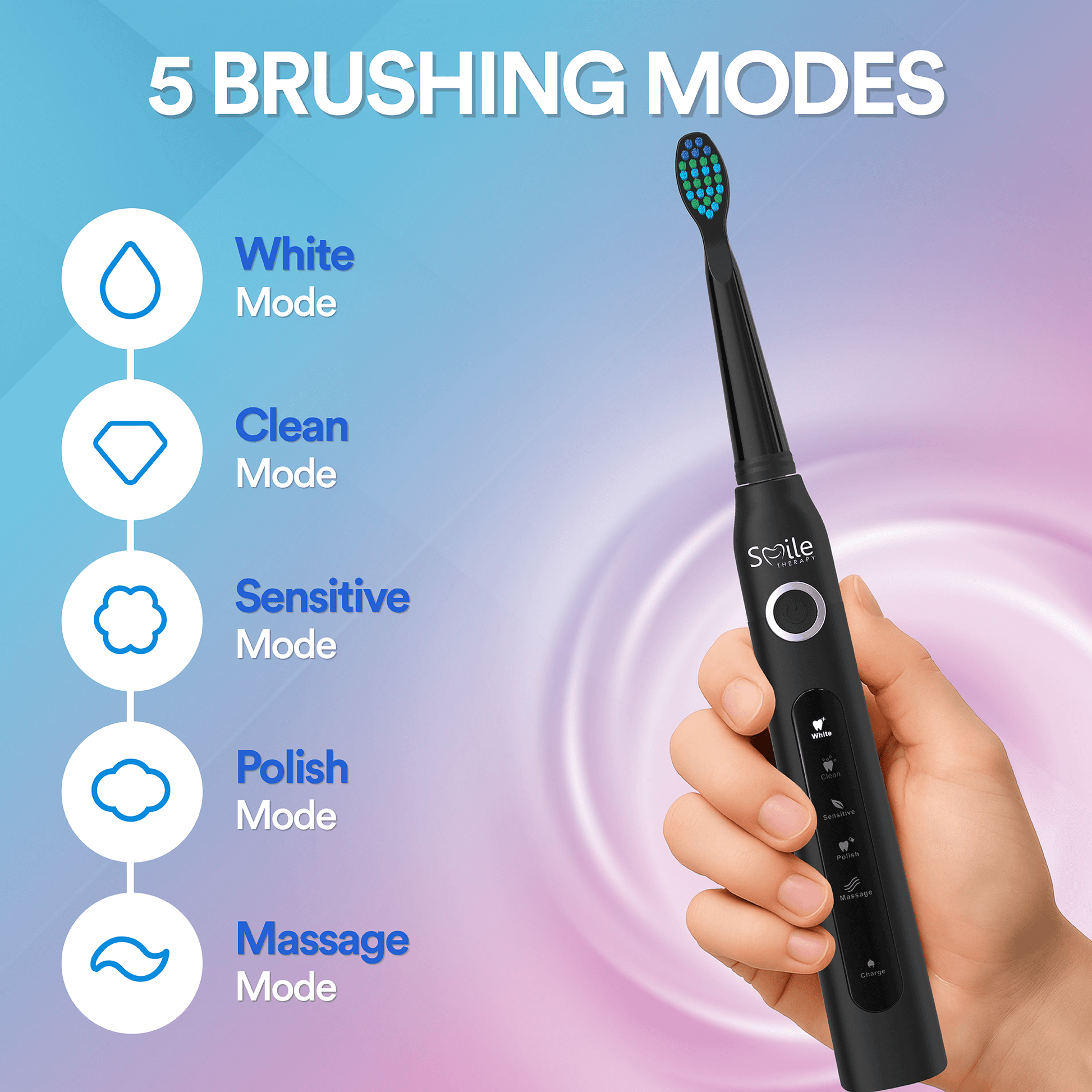 ✓ 5 cleaning modes: White, Clean, Sensitive, Polish, Massage
